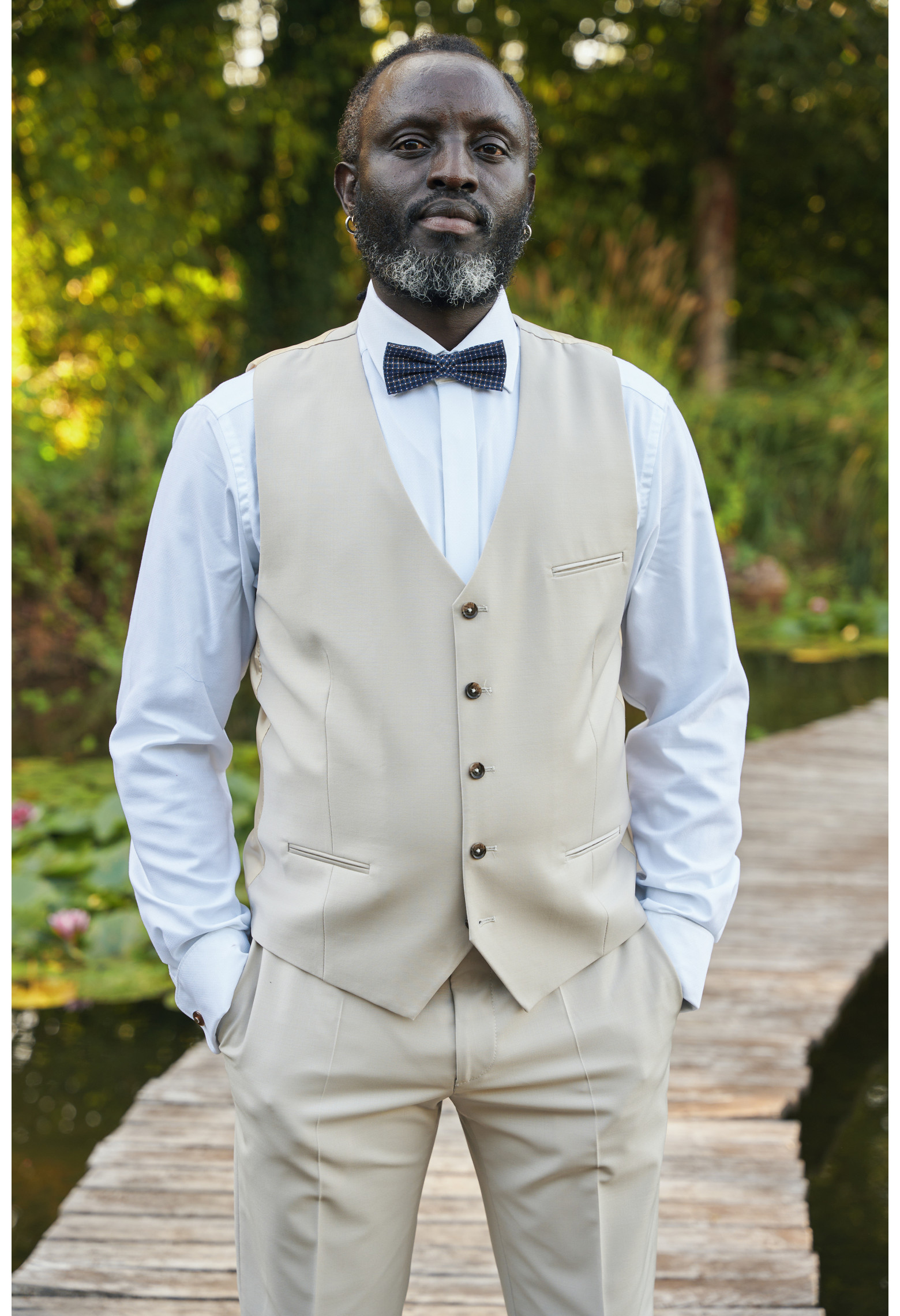 Gilet slim assortit au costume SUAT en mélange laine extensible dans un beau tissu uni craie, idéal pour un mariage ou pour le travail ! Son tissu et son coloris tendance vous séduira ! En savoir plus