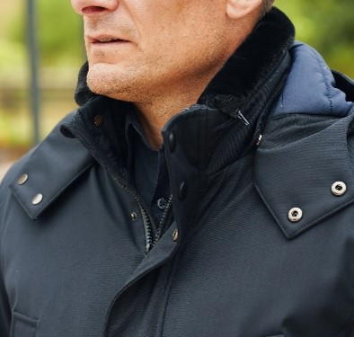 Très belle parka homme city réalisée dans un twill marine, à mi chemin avec un manteau, col avec fourrure amovible, grandes poches intérieures fermées par des zips: le best seller de la saison ! En savoir plus