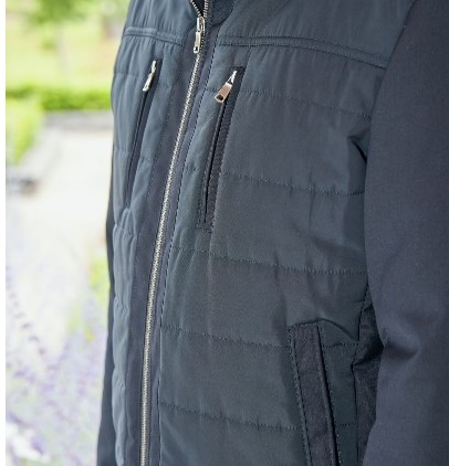 Blouson homme long bi matière marine avec poches repose mains, deux poches intérieures fermées: un des best sellers ! En savoir plus