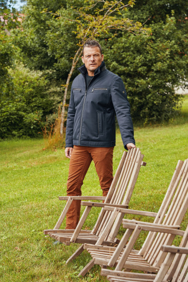 - deux poches poitrine passepoilées imitation cuir avec une fermeture éclair